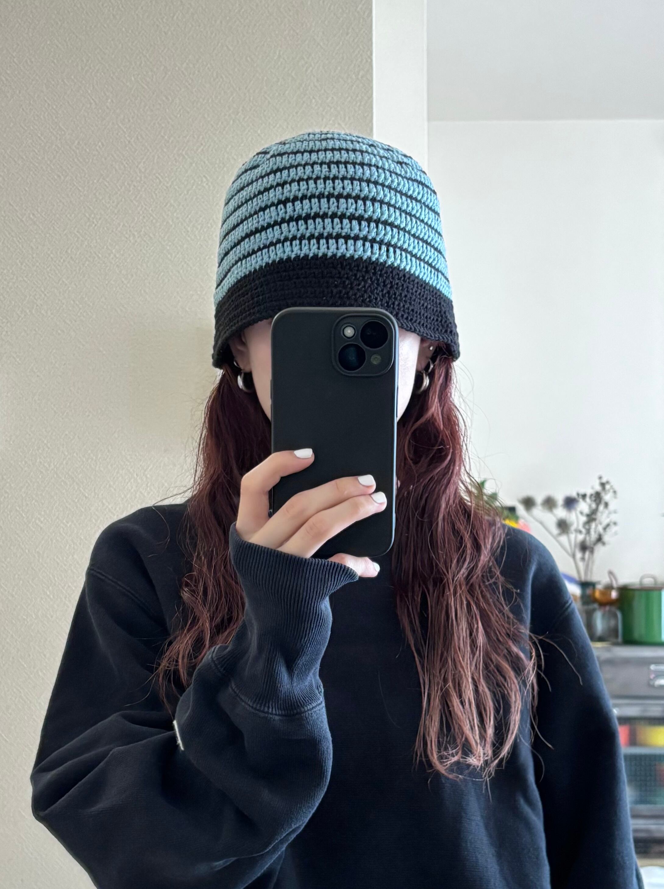 crochet hat (organic cotton100 / light blue×black)