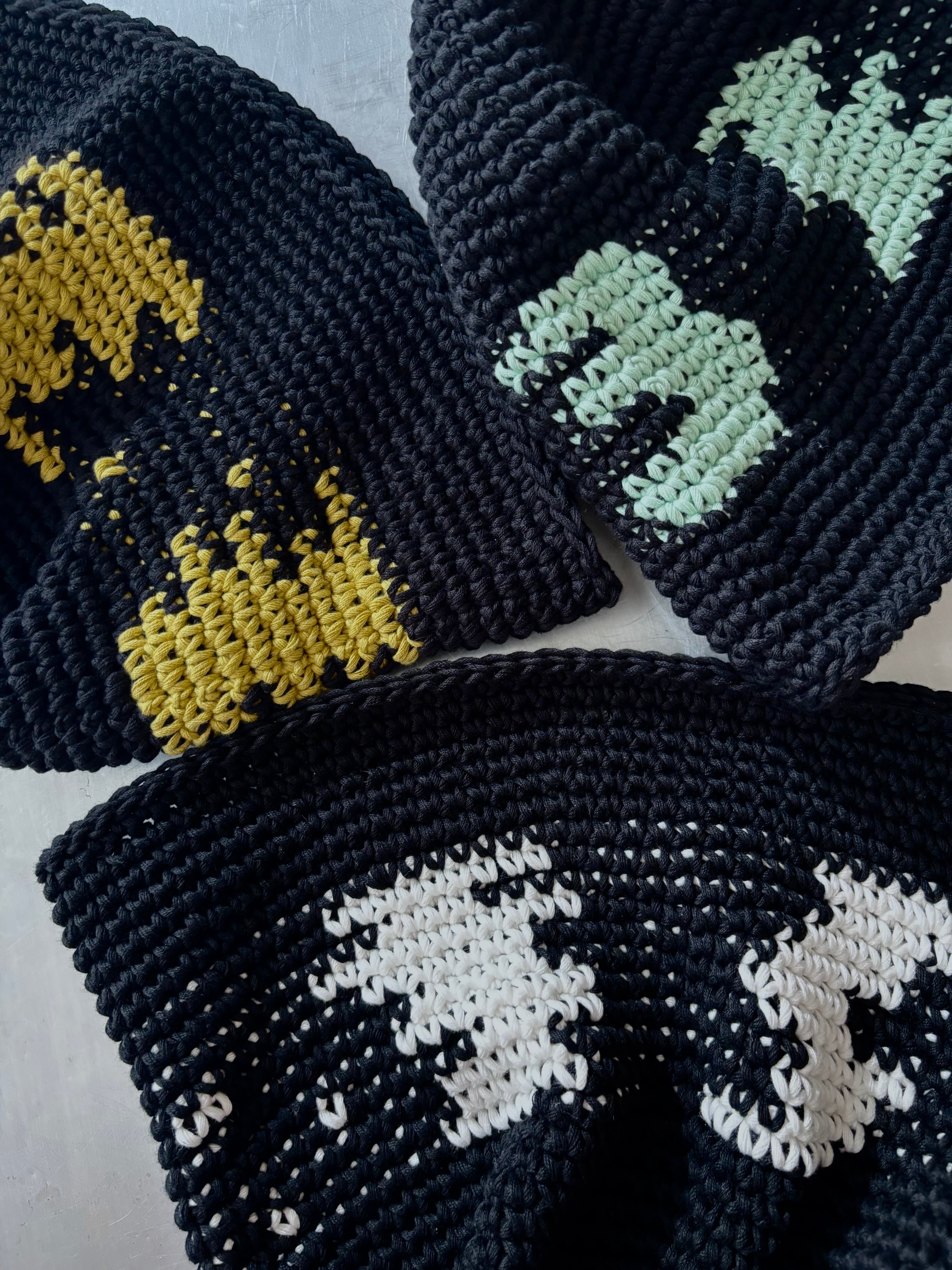 crochet hat (cotton100 / black×mint)
