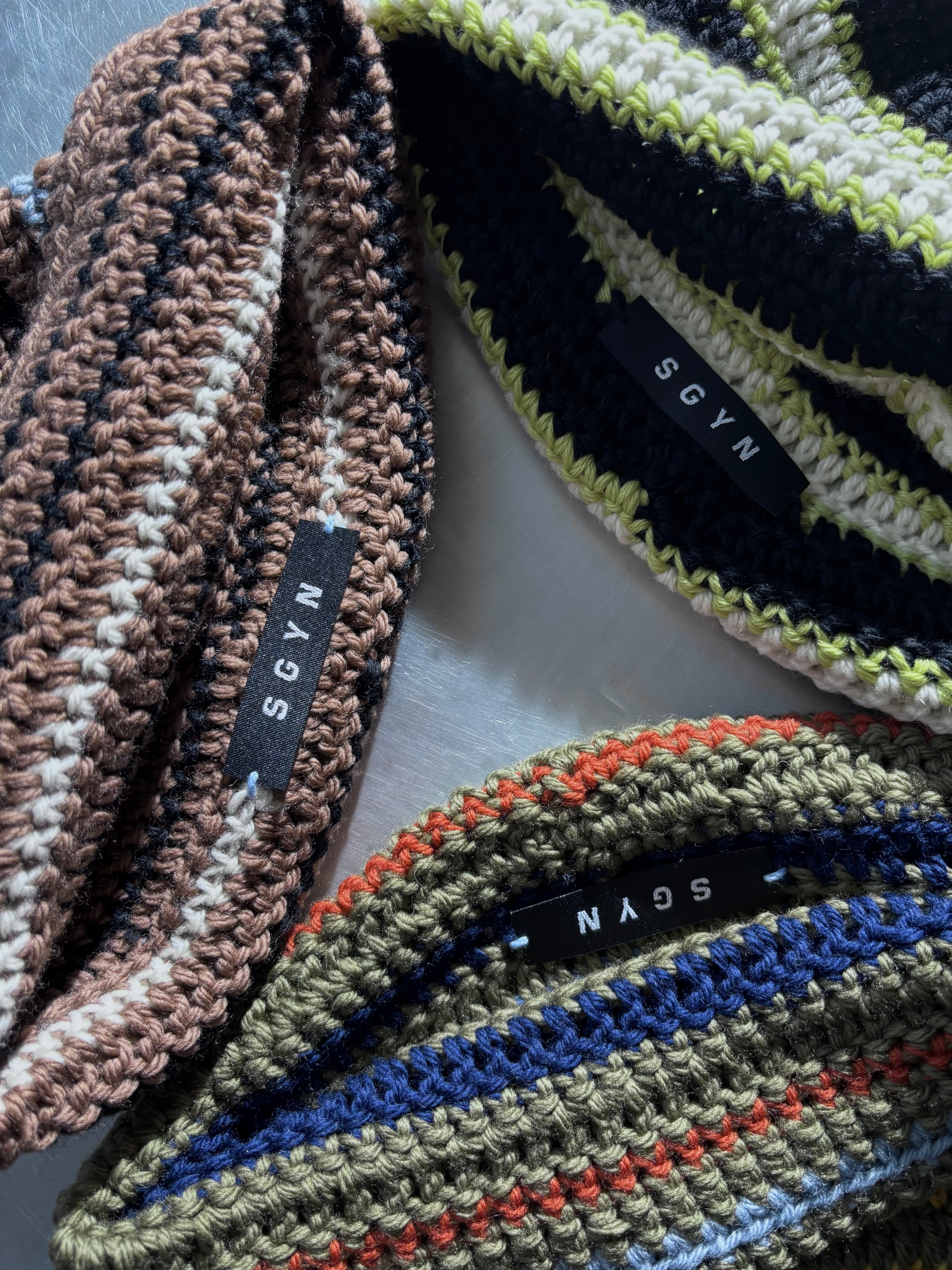ユニセックスデザインのクロシェ編みのニットキャップ。やわらかい生地感で締め付け感なく楽に着用していただけます。