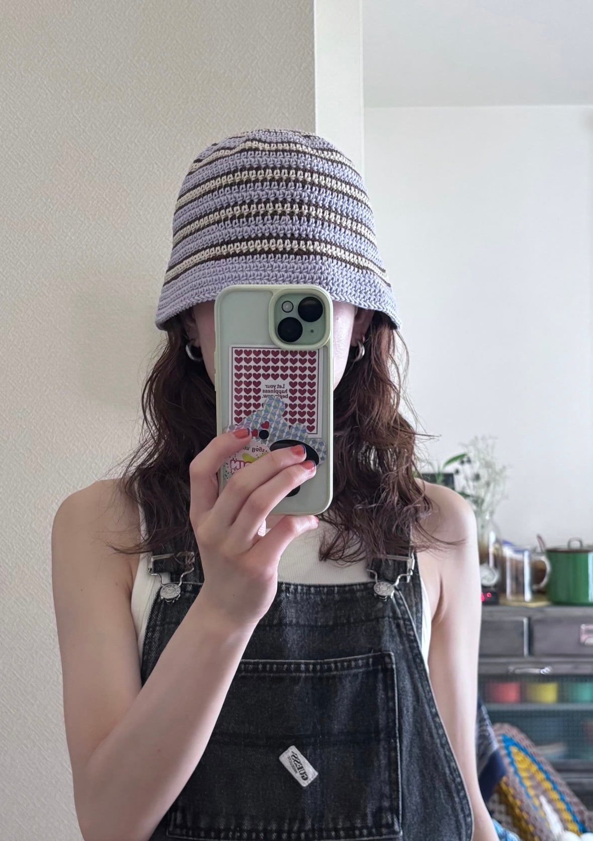 細めのコットン糸で編み立てたクロシェ編みのニットハット。