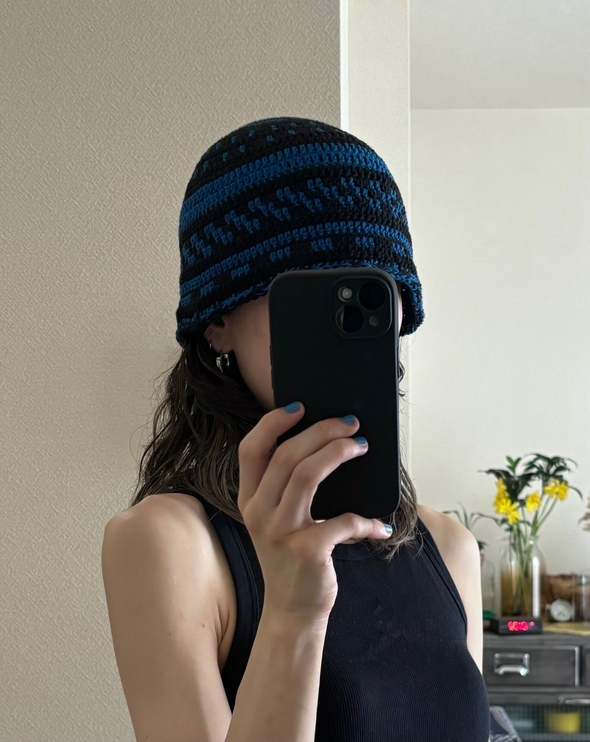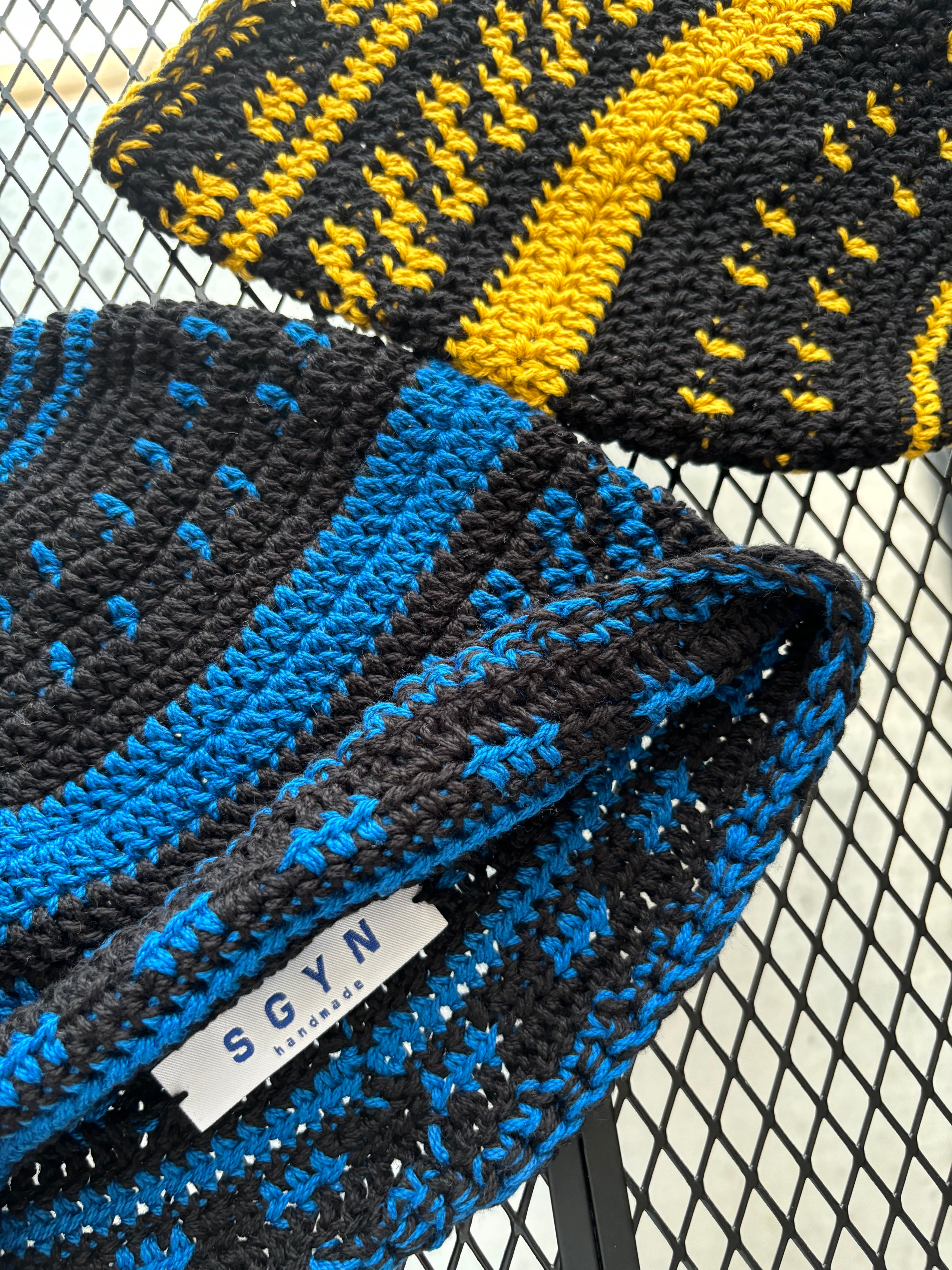 crochet hat (organic cotton100 / black × blue)