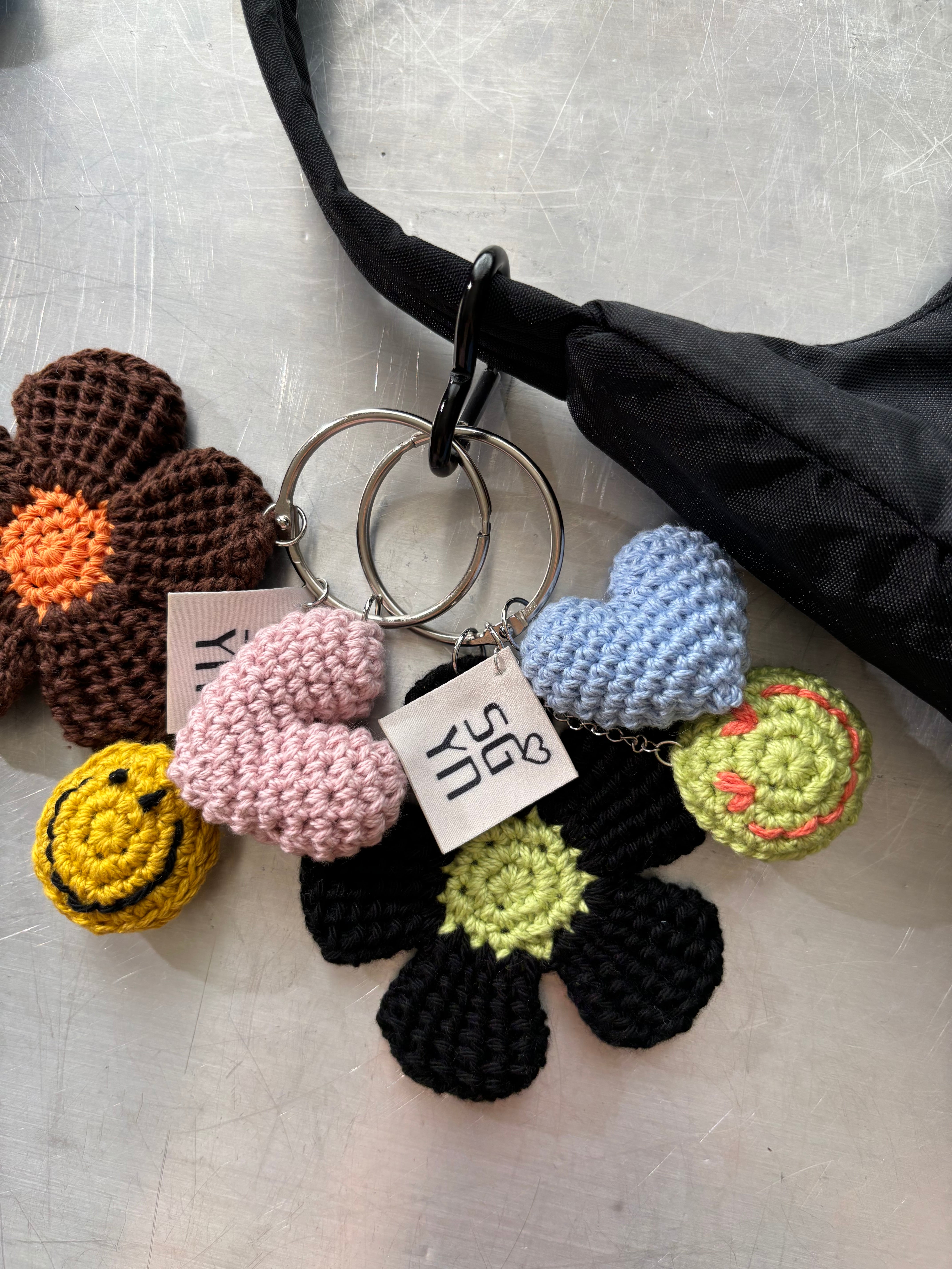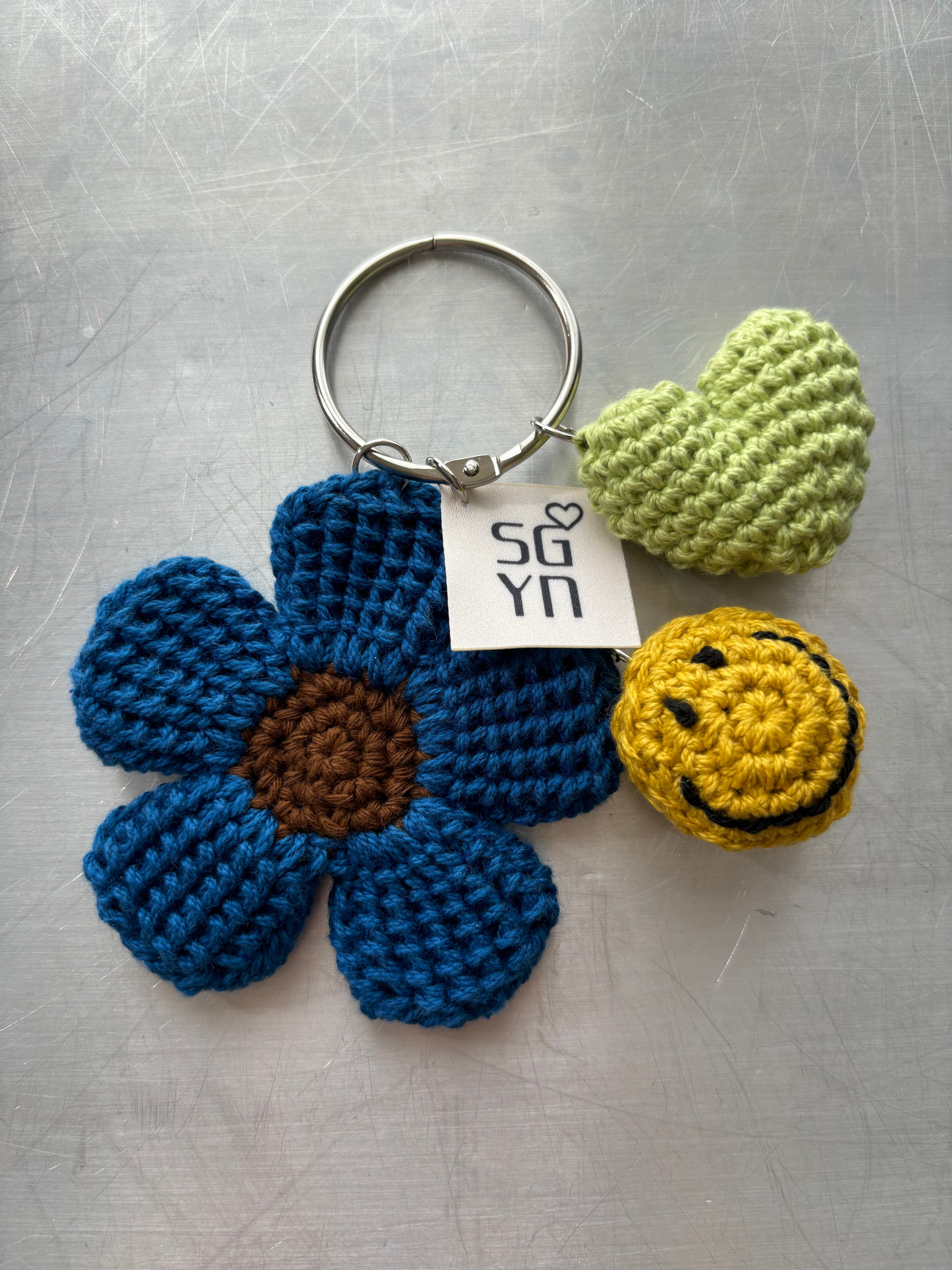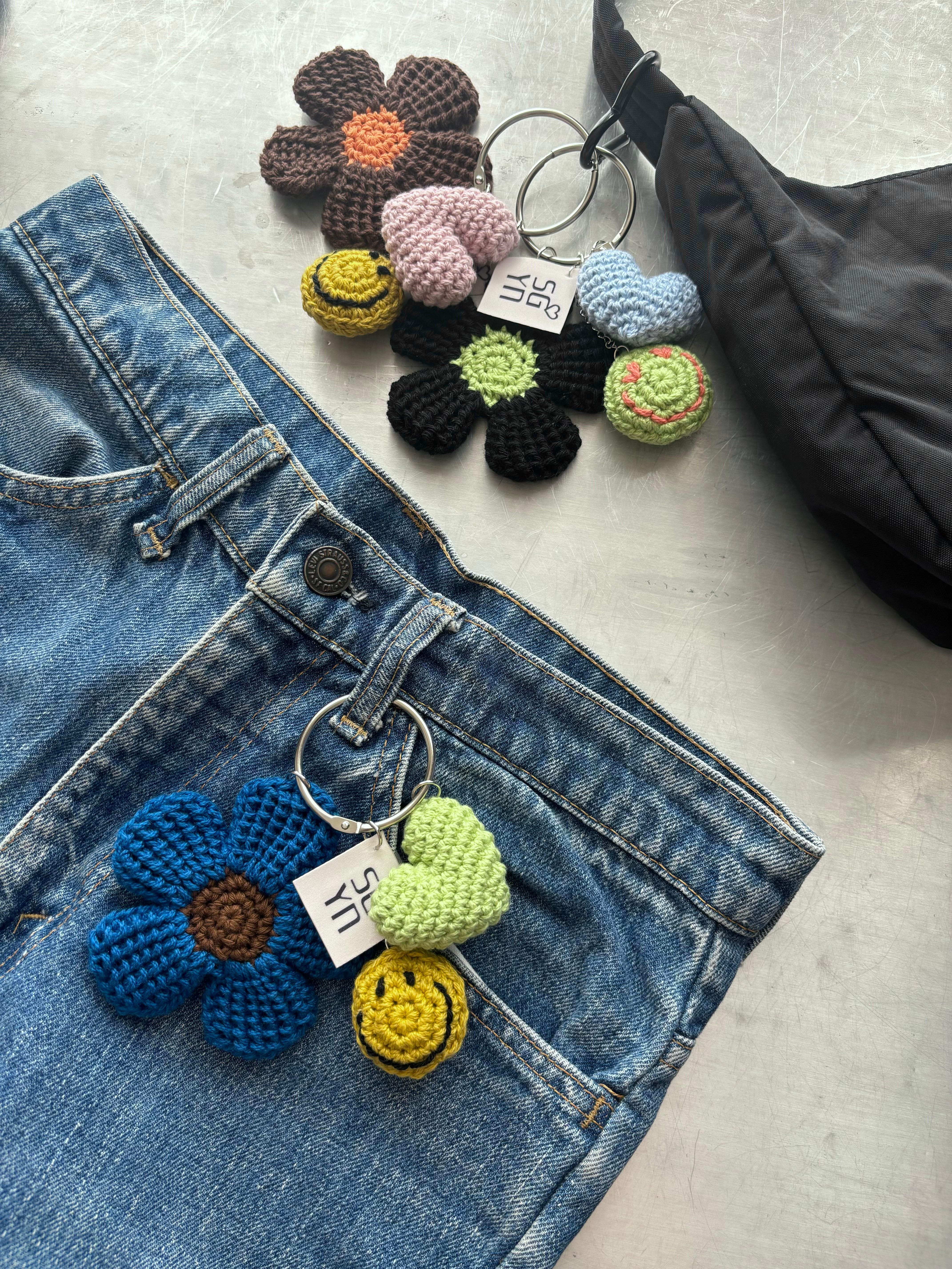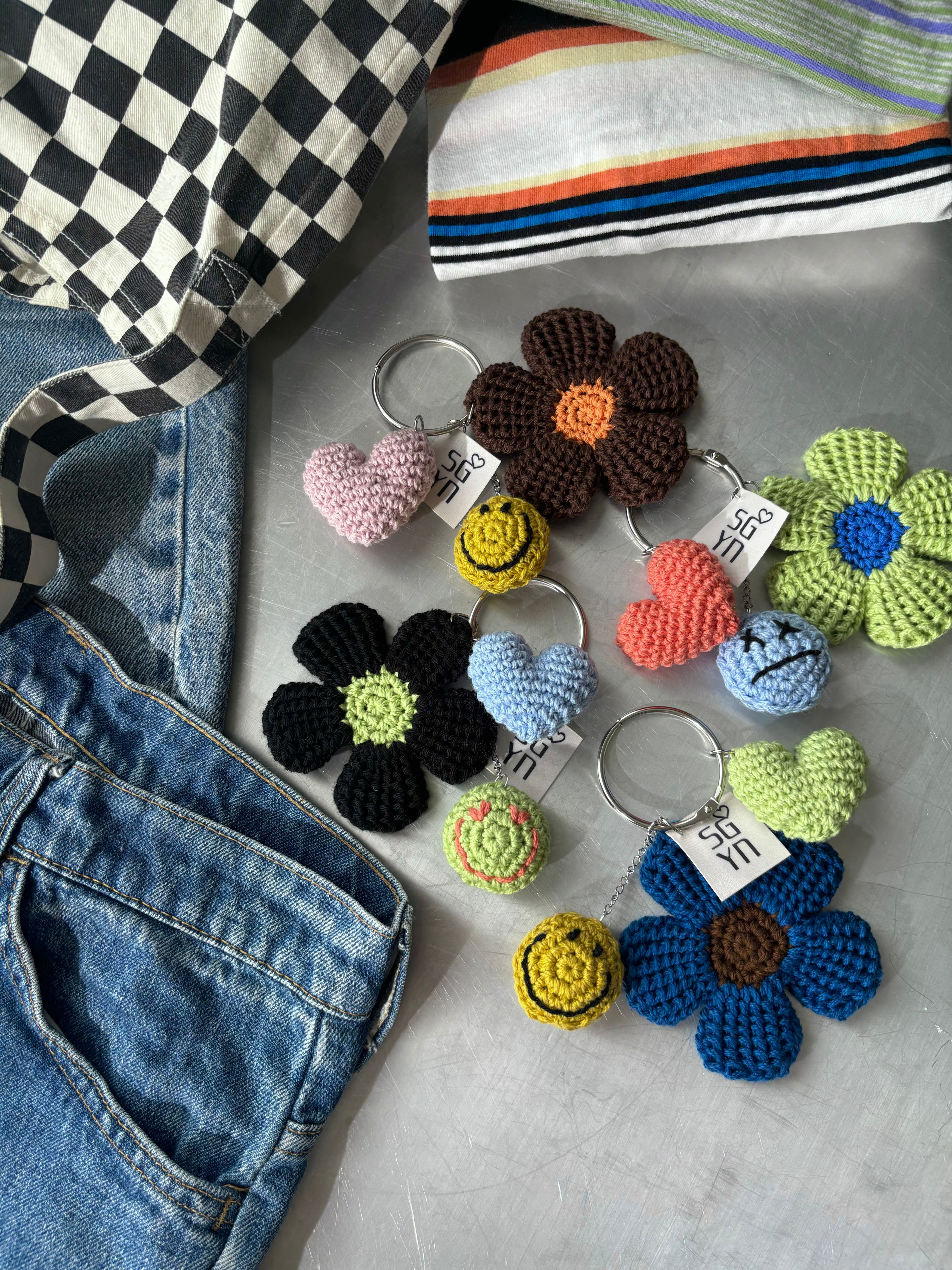 フラワー、フェイス、ハートを組み合わせたスペシャルなキーチェーン。