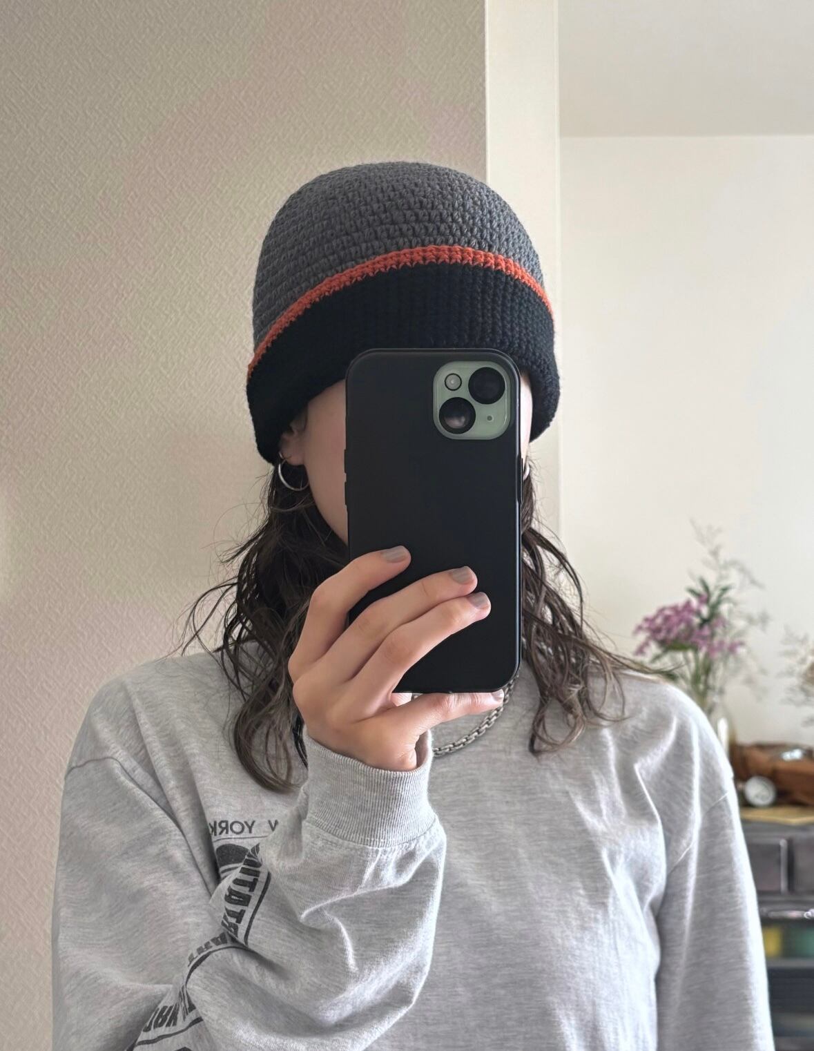 wool knit cap (wool100 / gray×black)
